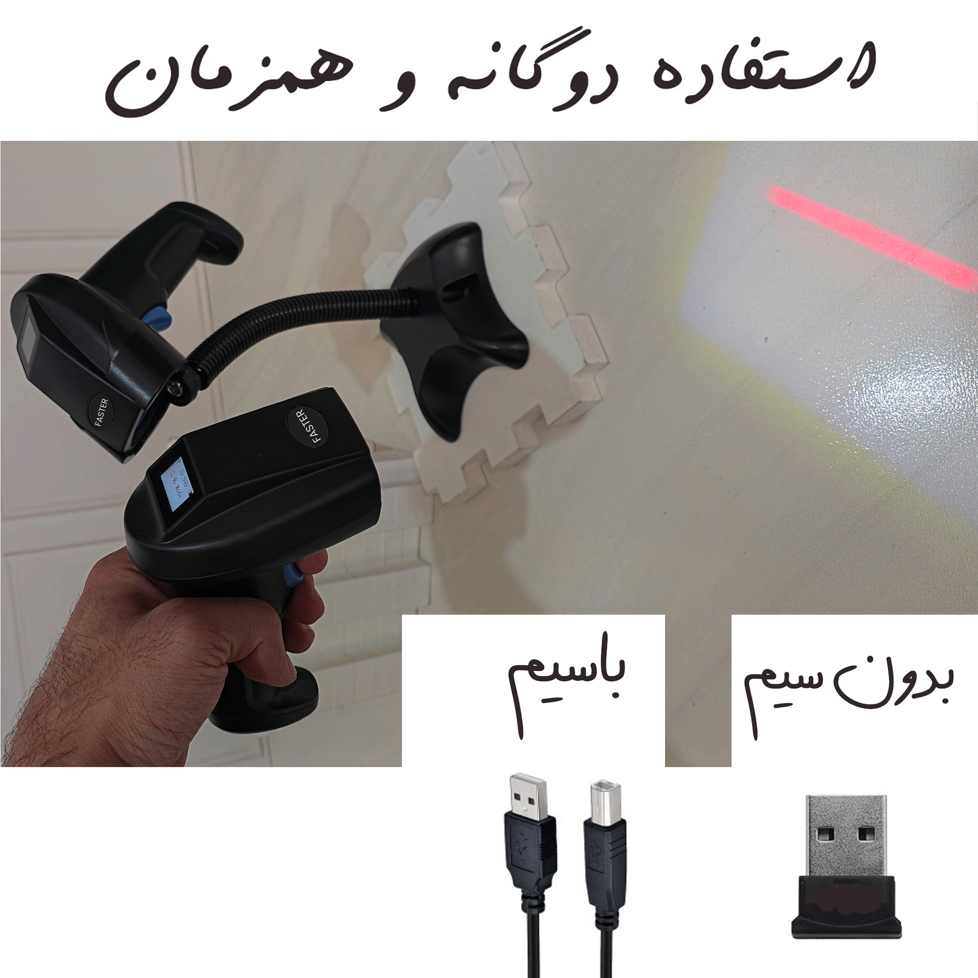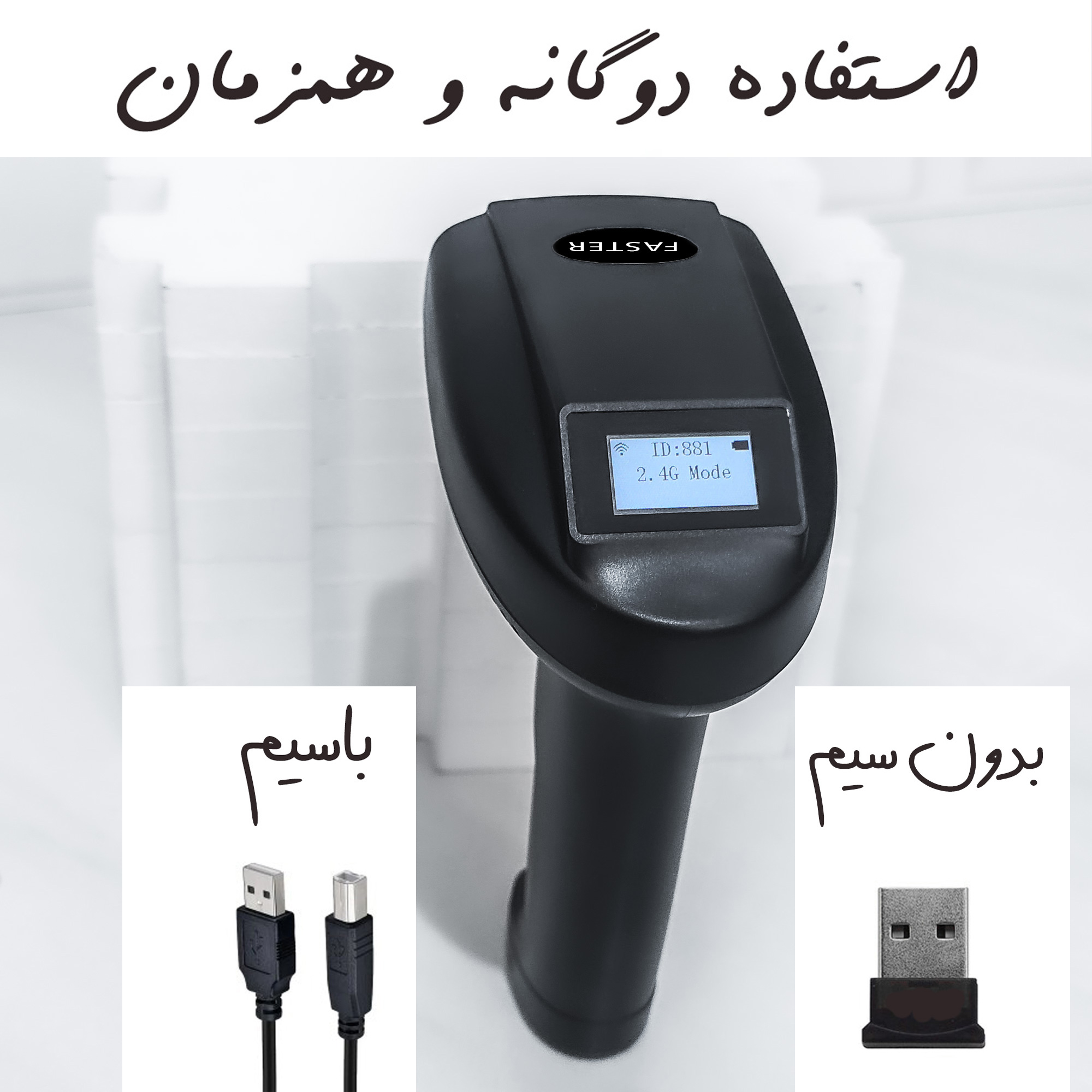 این بارکدخوان بی سیم و مانیتور دار است و دارای حافظه داخلی میباشد